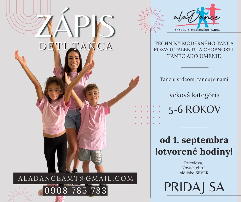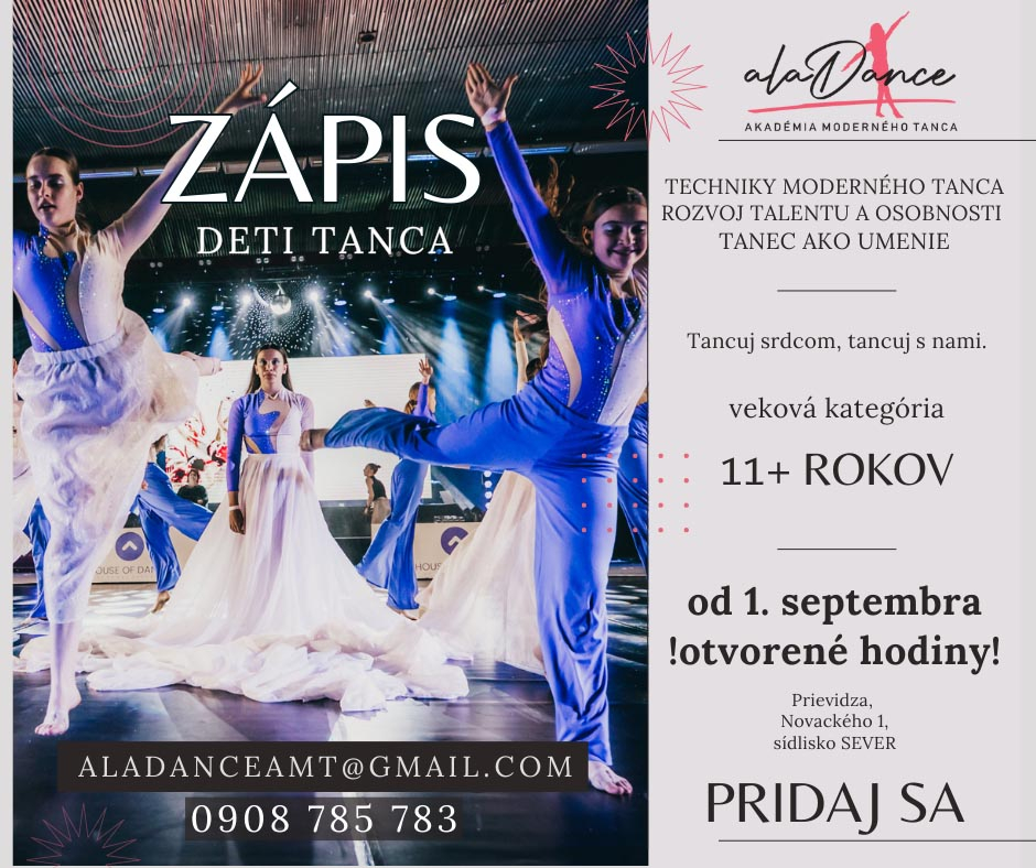 aladanceamt@gmail.com alebo telefonicky na 0908 785 783